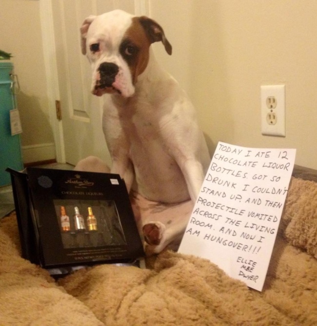 «Сьогодні я з'їв 12 шоколадних цукерок з лікером. Напився так, що спочатку не міг підвестися, а потім мене нудило у вітальні. І ось тепер у мене похмілля!!!»