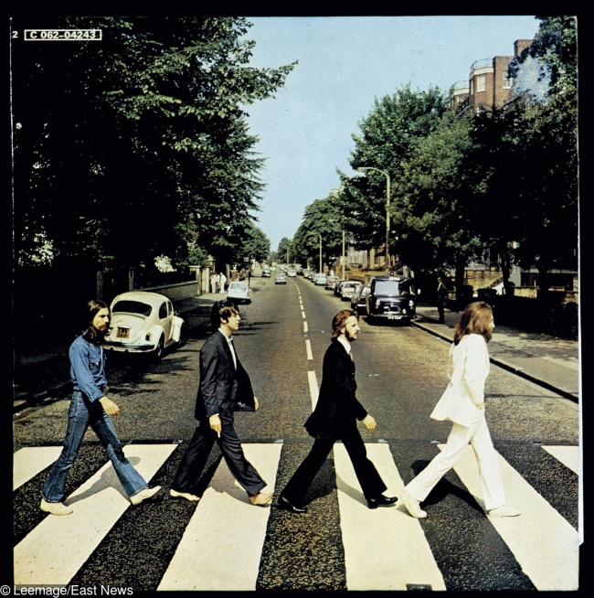 Обкладинка для 12-го альбому гурту була зроблена прямо біля студії звукозапису: спеціально для цієї події дорогу перекрили на кілька хвилин. В цей же час неподалік прогулювався американський турист: він розговорився з поліцейським в припаркованій праворуч машині. Чоловік здивувався дивакам, прогулюється по дорозі туди і назад, але незабаром забув про них, а через рік впізнав себе на обкладинці легендарної групи.