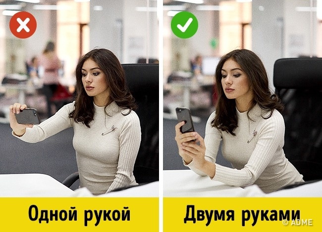 Тримайте телефон двома руками, а ще краще візьміть ліктем о-пліч. З вигляду не скажеш, але руки трясуться у всіх. Камера все помітить, і знімок вийде нечітким.