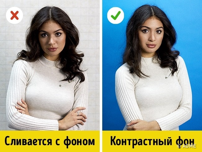 Якщо ви не робите фото на тему «знайди кота», краще не фотографуватися в білій шубі на білому снігу. Слідкуйте за фоном: він повинен бути контрастним і підкреслювати, а не приховувати.