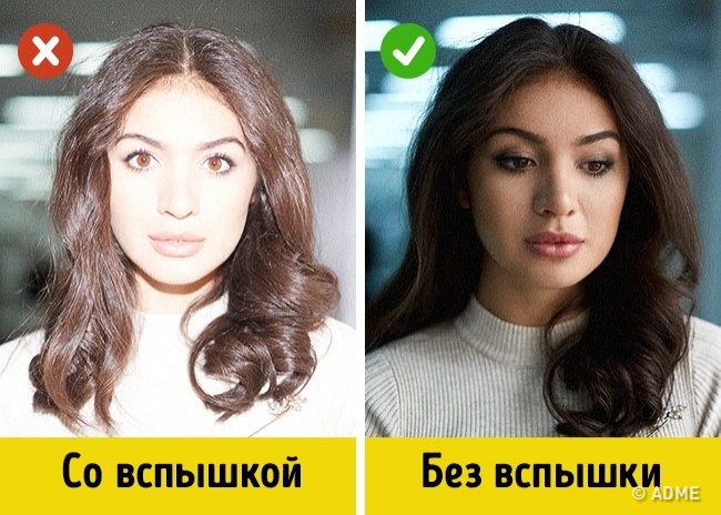 Забудьте про вбудований спалах. Вона вбиває обсяг. Але з цього правила є виняток: спалах можна використовувати в сонячний день, щоб прибрати зайві тіні на обличчі.