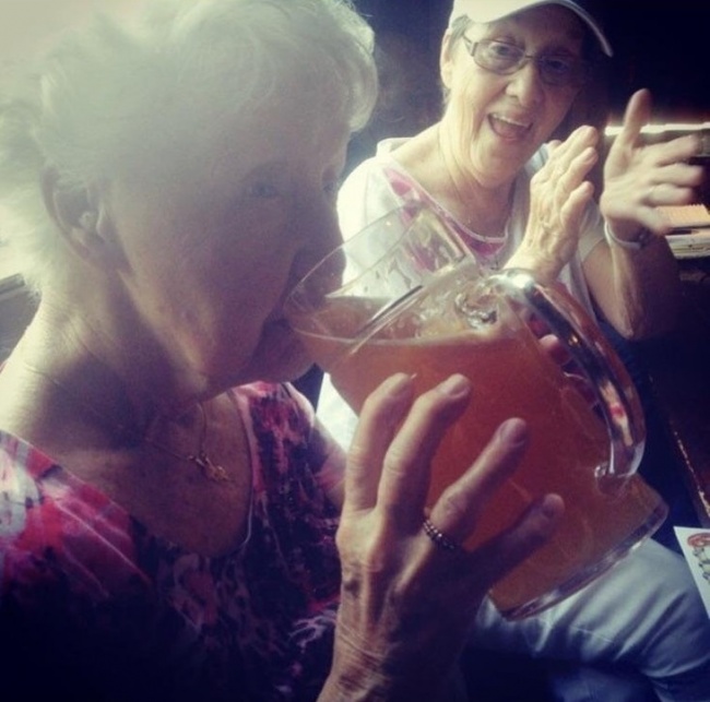 «Моя бабуся перший раз в житті пробує алкоголь, а моя друга бабуся (на задньому плані) підбадьорює її»
