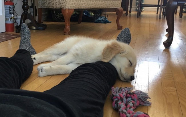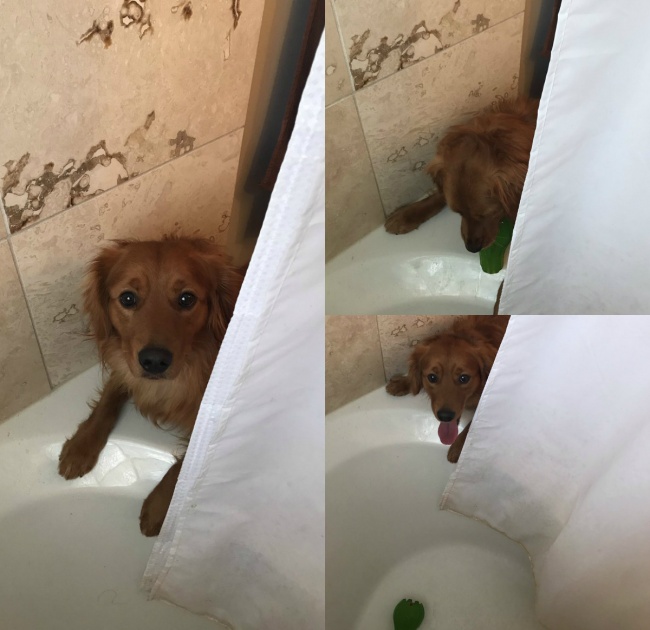 «Мій пес не любить купатися, тому кожен раз, коли я в душі, приходить перевірити, чи в порядку я. А ще він упевнений, що я не в захваті від того, що купаюся, тому кидає свою іграшку, щоб мене розвеселити»