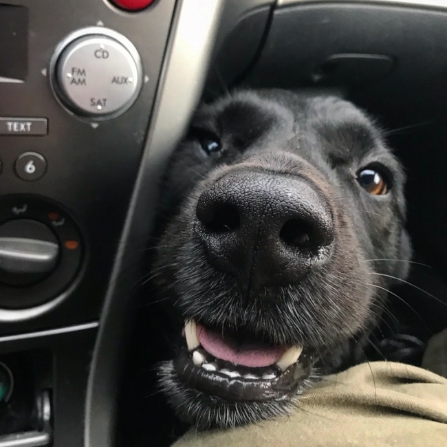 «Він дуже виріс, щоб сидіти біля моїх ніг, коли я в машині. Але, здається, його це не дуже турбує»