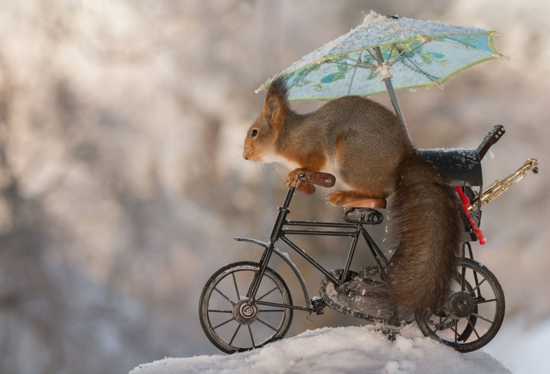 48-річний Герт Вегген (Geert Weggen), тесляр за професією і фотограф за покликанням, знімає білочок ось уже кілька років. Він живе в селі в Швейцарії на околиці лісу, і звірята запросто заглядають до нього в гості. Фотограф залишає їм горішки і цікаві предмети, вигадуючи незвичайні сюжети для зйомок. Білки звикли до Герту, а деякі навіть оселилися в нього на даху.