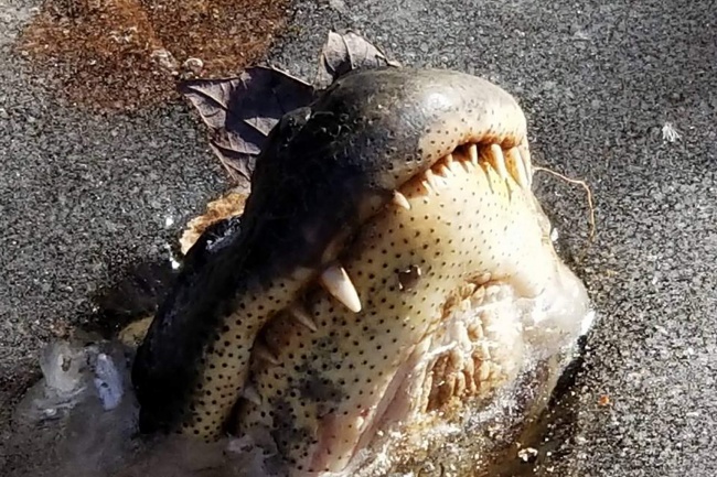 Саме так алігатори переживають сильні морози. Вони впадають у сплячку і висовують морду з-під льоду, щоб не задихнутися.