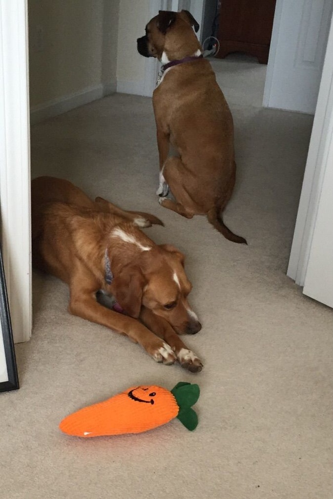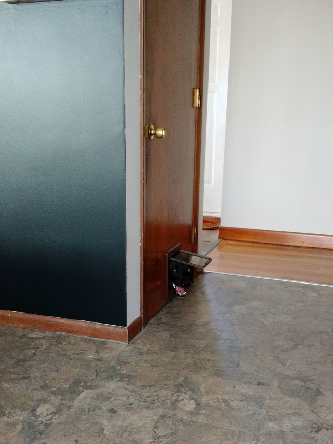 "Моя собака знає, що їй не можна заходити в офіс. Вона випадково закинула всередину свою іграшку і тепер намагається її витягнути, щоб я не помітив"