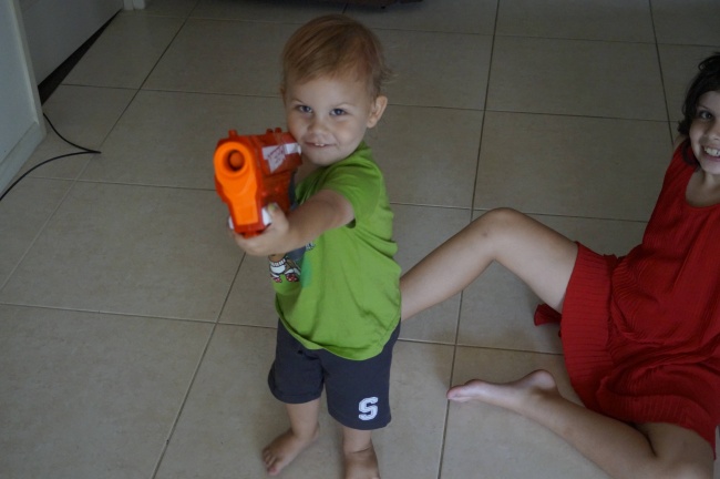 Фотографія, зроблена за секунду до того, як малюк розбив з іграшкового пістолета об'єктив камери