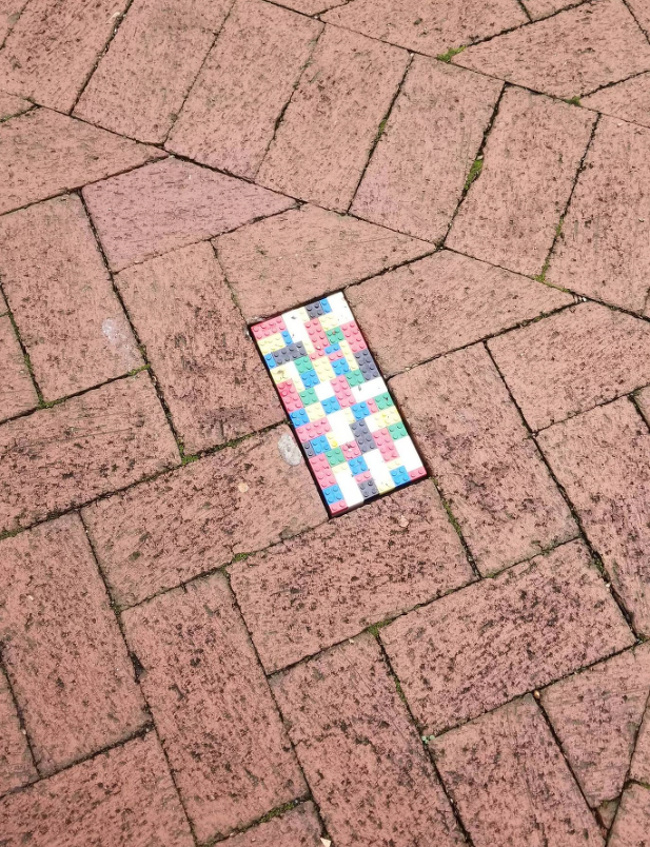 Хтось із студентів замінив відсутню плитку біля гуртожитку блоками Lego