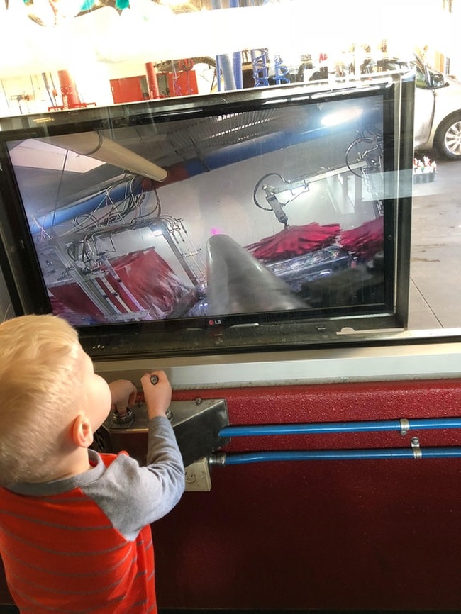 В автомийці встановили "мильну гармату" для дітей, щоб вони могли розважитися, а заодно допомогти мити автомобілі