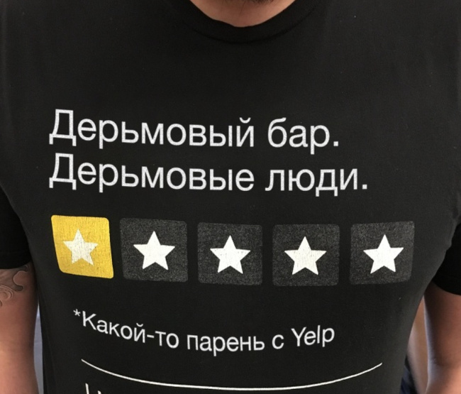 Власники цього бару рекламують його за допомогою футболок з поганим відгуком