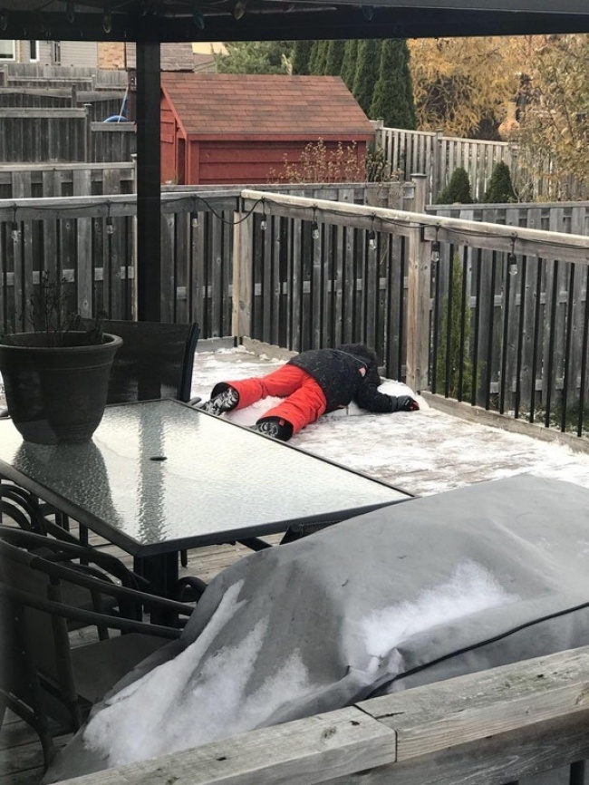 «8-річний племінник вперше побачив сніг і вийшов пограти на вулицю. Схоже, я застав його в самий розпал гри»