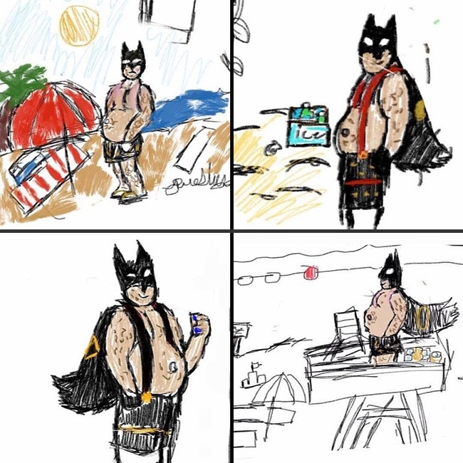 «Мій 11-річний син почав малювати товстого старого Бетмена на пляжі. І схоже, це те, чого нам всім так не вистачало в житті»