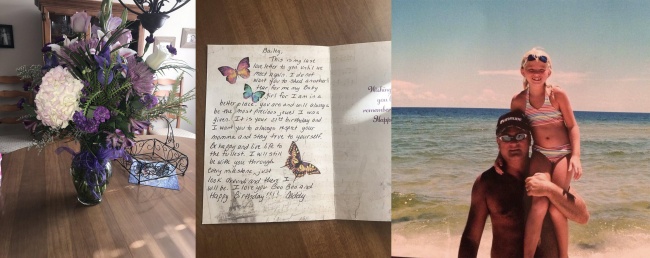 Її батько помер від раку, коли їй було 16, але до цього він встиг зробити попереднє замовлення квітів на кожний наступний день народження дочки. На фото букет і листівка, які їй доставили на 21-й день народження.