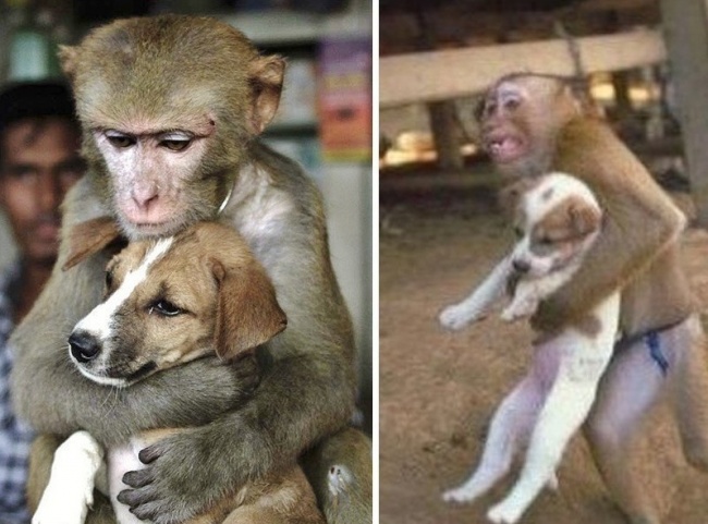 Ризикуючи власним життям, мавпа винесла цуценя з страшної пожежі