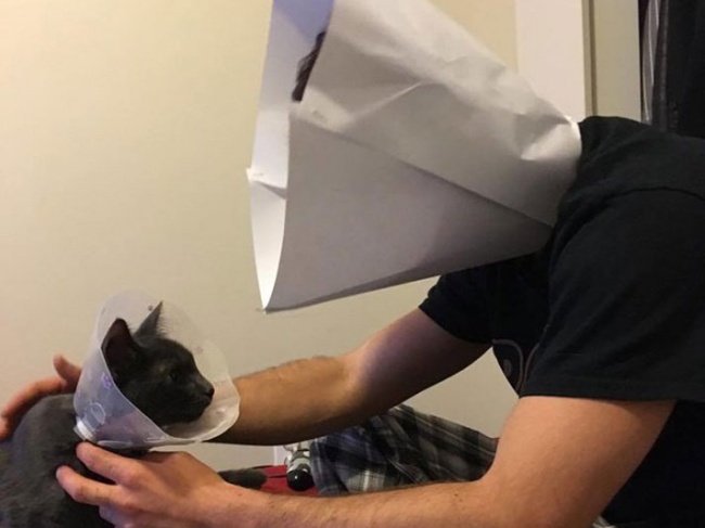 Хлопець зробив собі конус, щоб його коту не було образливо