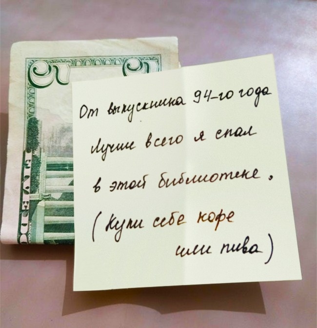 «Заснув у бібліотеці, а коли прокинувся, знайшов на столі $ 5 і записку»