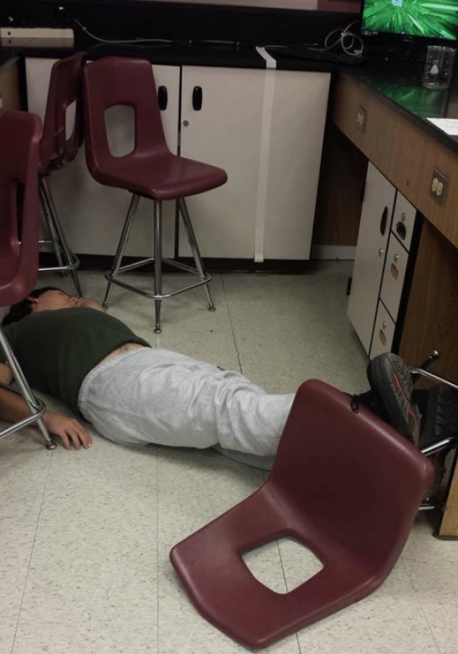 «На цьому тижні ми здаємо підсумкові іспити. Цей хлопець впав зі стільця, 30 секунд сміявся над собою і заснув на цілих 40 хвилин»