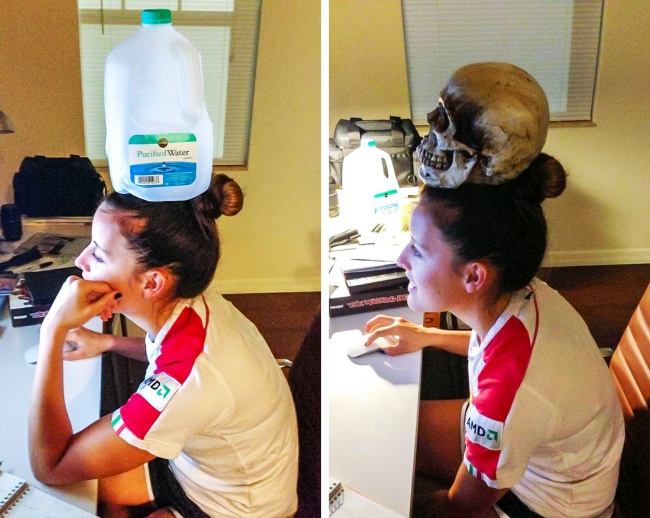 «Іноді мені стає особливо нудно, і я тренуюся в балансуванні різних речей на голові моєї дружини»