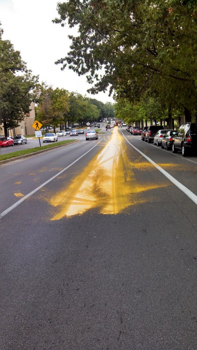 15. Водієві сьогодні точно не пощастило. І ще асфальтоукладчику