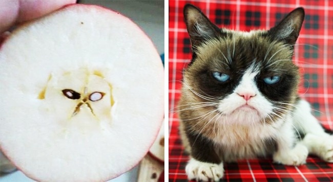 Бонус: а це яблуко виглядає як самий невдоволений кіт у світі