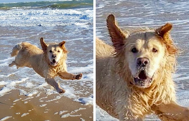 16. Цей песик у польоті над пляжем, здається, збентежений фотозйомкою