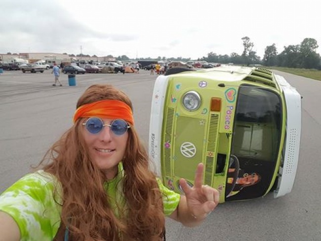 Жахлива аварія? Ні! Цей автобус спокійно їздить на боці. Всередині захована легковик