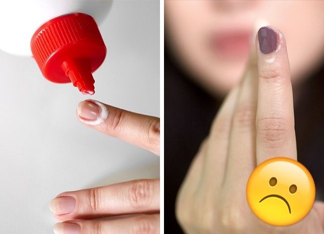 З одного боку, цей прийом дійсно працює і ви зможете видалити таким чином надлишки лаку. З іншого боку, досить довго доведеться чекати, поки клей висохне. Як варіант, можна спробувати замінити клей вазеліном або кремом.