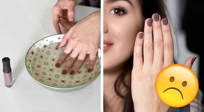 Потримати нігті в холодній воді, щоб лак швидше засох