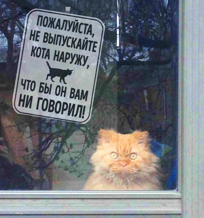«Будь ласка, не випускайте кота назовні, що б він не казав!»
