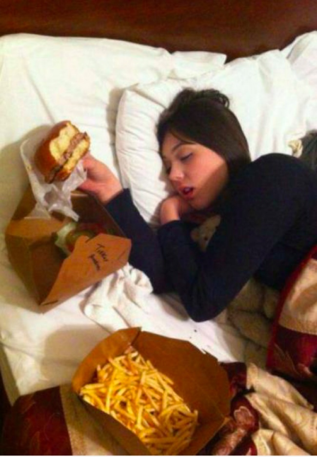 16. «Моя сестра — веган. Вчора вона повернулася з бару і заснула на моєму місці. Що ж, сюрприз!»