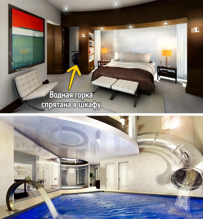 Водна гірка, з якої можна плюхнутися в басейн прямо із спальні