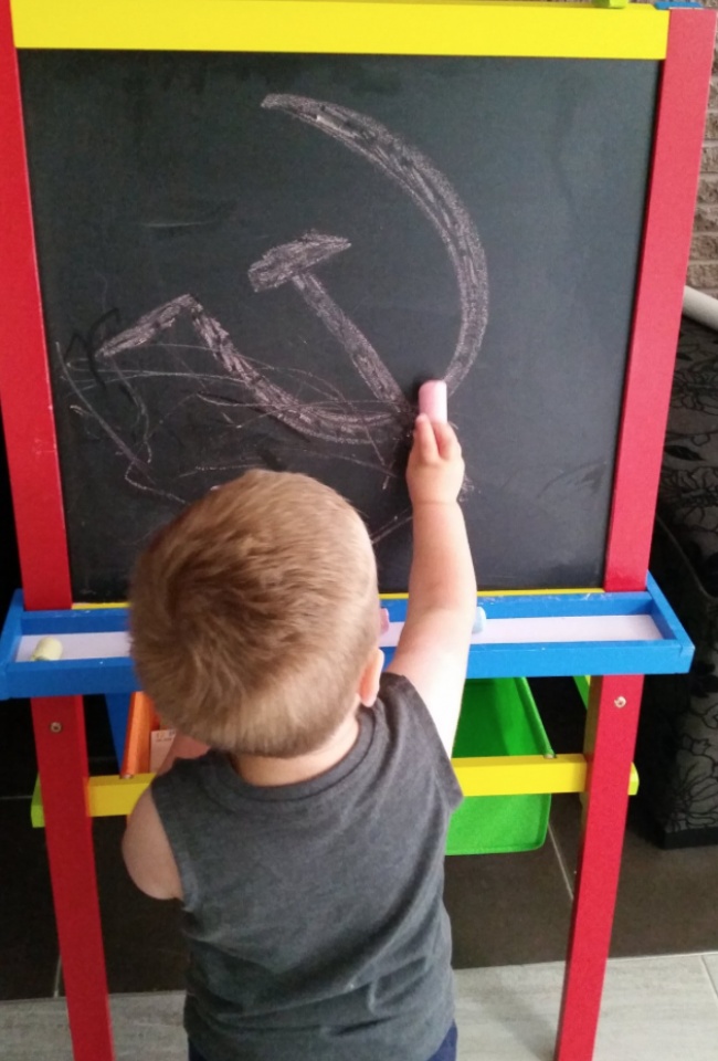 А цей малюк сміливо проявляє себе в мистецтві