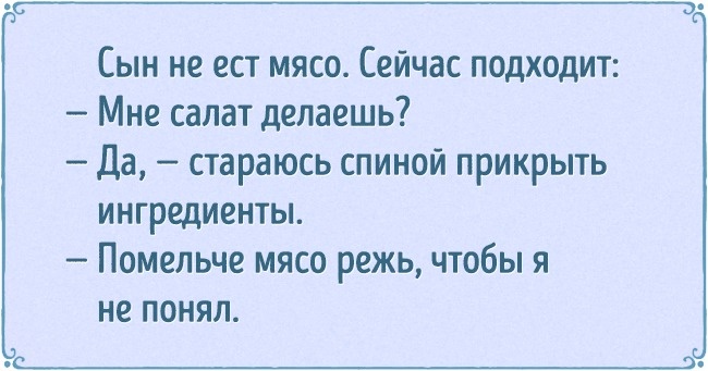— Матуся, дуже смачно, ти у мене краще за всіх готуєш! Більше таке не готуй...