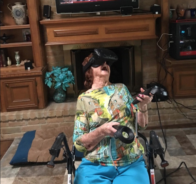 93-річна бабуся Евелін грає в окулярах віртуальної реальності