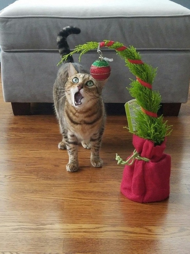 Кожен господар котика знає не з чуток, що ялинка, гірлянди і мішура залучають улюбленого вихованця сильніше всіх консервів на світі. То пухнастики так радіють новорічним прикрасам, то хочуть «надерти їм дупу» і показати, хто в домі головний і красивий.