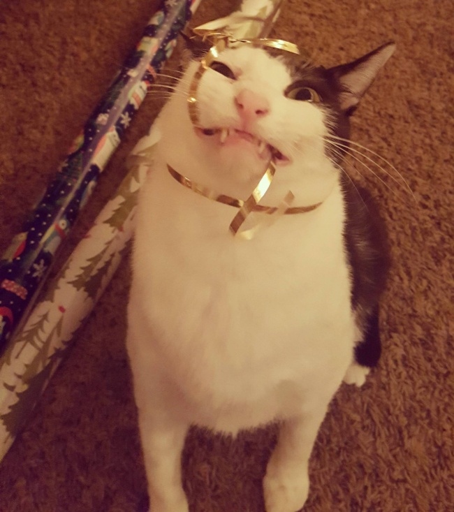Цього кота теж бісить упаковка: ніяк акуратний не зав'язати бантик
