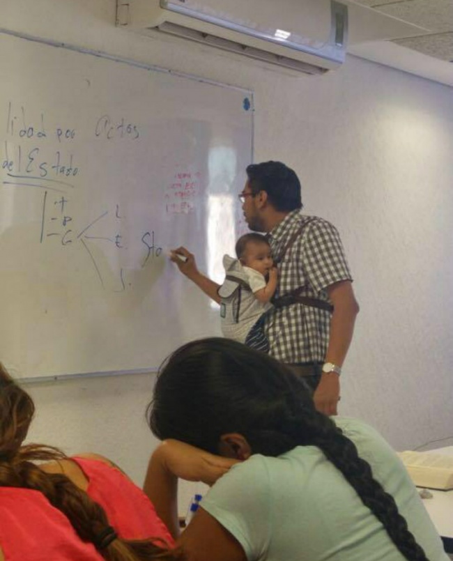 Мій учитель сьогодні всю пару водився з дитиною однією з моїх однокурсниць