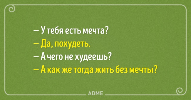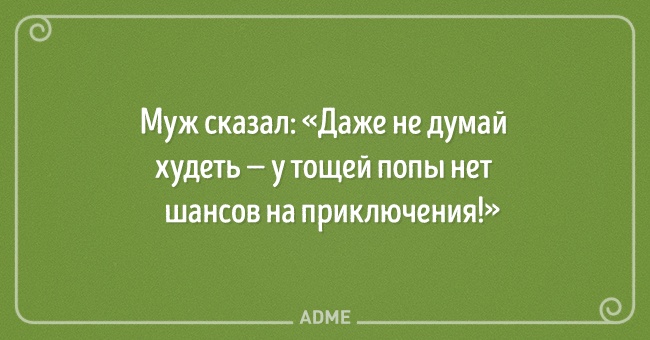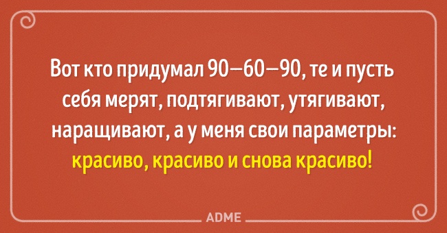 Дієти, калорії, фітнес, поради подруг — це теми для нескінченних дівочих розмов і жартів. Кожна жінка прагне бути красивою, але одні буквально зациклюються на цьому, а інші просто весело дивляться на ситуацію і не впадають у відчай, якщо тіло виглядає не за стандартами модних журналів.