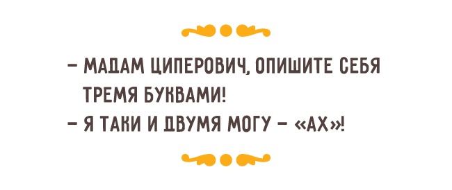 — Йося, ти це бачив? А комусь вона таки вже поперек горла стоїть! - — Ізя, а що ти приймаєш при безсонні?