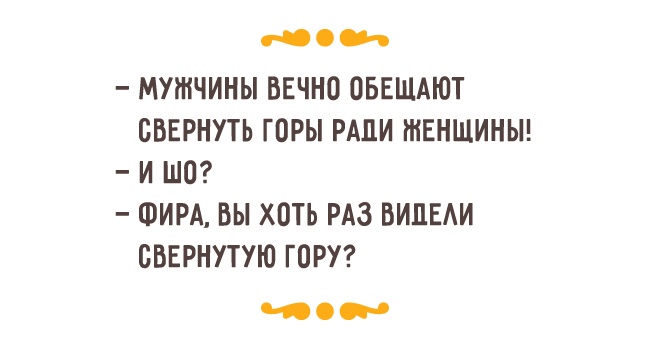 - Жіночий тост одеситки: «Так вип'ємо ж за те, шоб наші сукні збігалися з нашими розмірами».