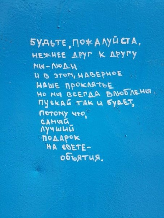 Кожен день у великих і маленьких містах на стінах стихійно з'являються нові тексти. Вони відрізняються за змістом і несуть різні емоції. Комусь вони подобаються, а хто їх лає. Але їх неможливо заборонити, вони виникають в найнесподіваніших місцях, і частина з них варта уваги.