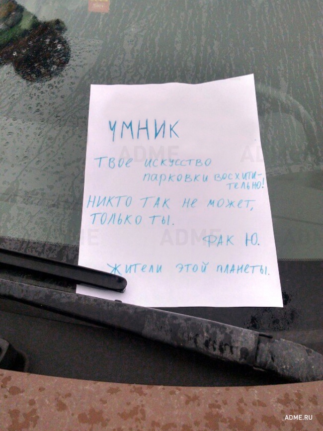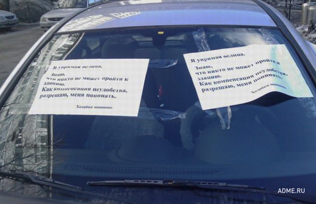 Є такі люди, які з якихось незрозумілих причин залишають свої машини в недозволеному місці або в неправильному положенні, перекриваючи дорогу і заважаючи руху. І, природно, знаходяться ті, хто намагається закликати до здорового глузду горе-водіїв.