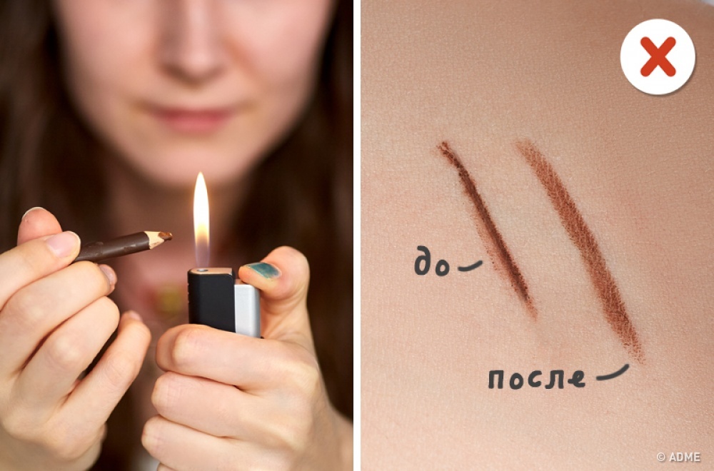 Олівцем для очей можна малювати як рідкою підводкою, якщо потримати його над вогнем