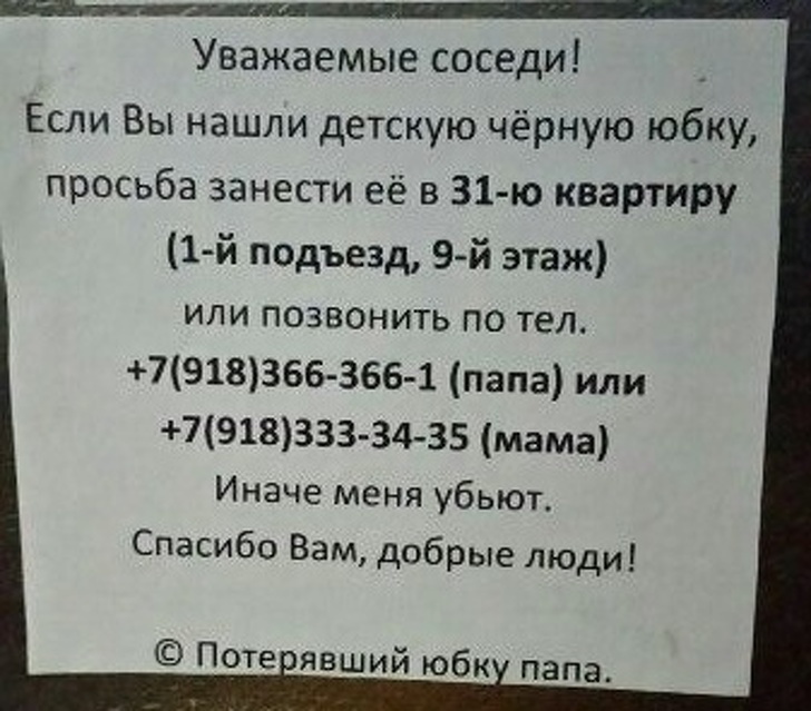 У друзів народився 2-й дитина. Запитавши, що потрібно купити для новонародженого, йдемо відзначати. Піднімаємося по сходах, в руках квіти, торт і ванна. На поверсі вище відчиняються двері, і з матюгами пробігає повз нас батько сімейства, слідом, з криками пораненої чайки, біжить жінка, тягнучи за руку 5-річного ревучого Андрійка. Ми злякано вжимаемся у кут і на всяк випадок прикриваємося ванночкою. Так як дружина біжить повільніше через дрібного, встигаємо почути між криками «Як ти міг?! Так хто ти після цього?» гостинне: «Заходьте, ми зараз».