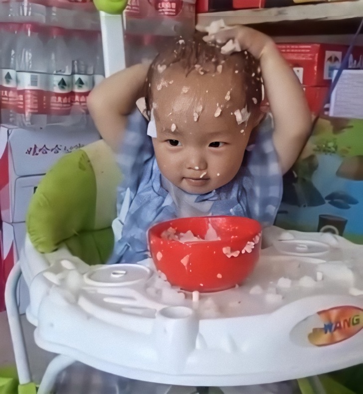 Батькам маленьких непосид треба ставити пам'ятник за життя. Як встежити за дитиною, якщо він раз у раз намагається витворити щось таке, від чого у дорослих волосся стає дибки? Хтось із малюків намагається «випити цілу склянку піску, комусь приносить задоволення вимазатися рисом, а деякі можуть втратити чупа-чупс у власних волоссі, як, наприклад, хлопчик в кінці статті.
