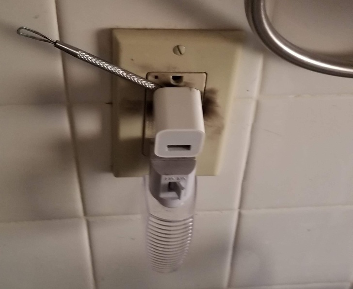 12. «Дочка не могла витягнути зарядний пристрій після того, як помила руки. І вона вирішила скористатися цим металевим інструментом. На щастя, вона в порядку»