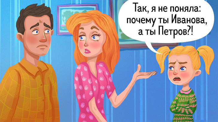 Якщо батьки дитини не одружені і мають різні прізвища, малюк рано чи пізно почне задаватися питаннями: «Чому в мене так, а в інших інакше? Моя сім'я якась неправильна?» І тоді батькам доведеться (як можна більш м'яко) пояснювати дитині, чому мама і тато не хочуть одружуватися, і ця розмова буде дуже непростим і, швидше за все, не єдиним.