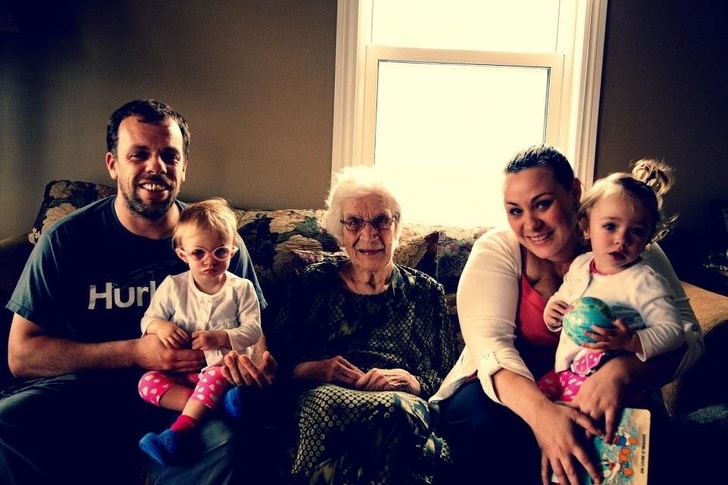 Бонус 2: ця бабуся народилася в 1913 році, а її правнучки-близнюки народилися у 2013 році, рівно через 100 років. У 2018 році бабуся відзначила 105-річний ювілей