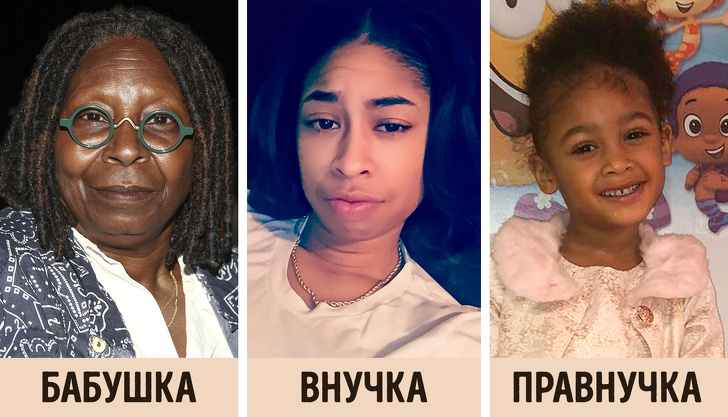 Вупі Голдберг стала бабусею в 34 роки: її 16-річна дочка Олександра народила дівчинку Амару. А через чверть століття на світ з'явилася правнучка актриси. Цією радісною новиною Голдберг поділилася зі своїми передплатниками в Instagram: «Зустрічайте поповнення в моїй родині — Чарлі Роуз. І так, я відчуваю себе ніяково!»